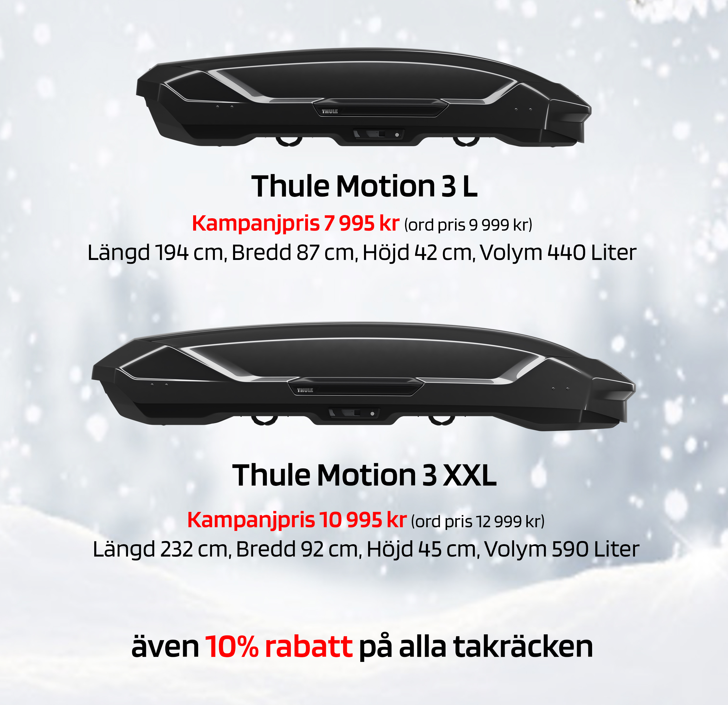 *Kampanjen gäller Thule takboxar och alla takräcken till ordinarie pris tom. 2022-02-27 hos Bilbörsen i Linköping, Norrköping och Nyköping. Kan ej kombineras med andra rabatter eller erbjudanden.
